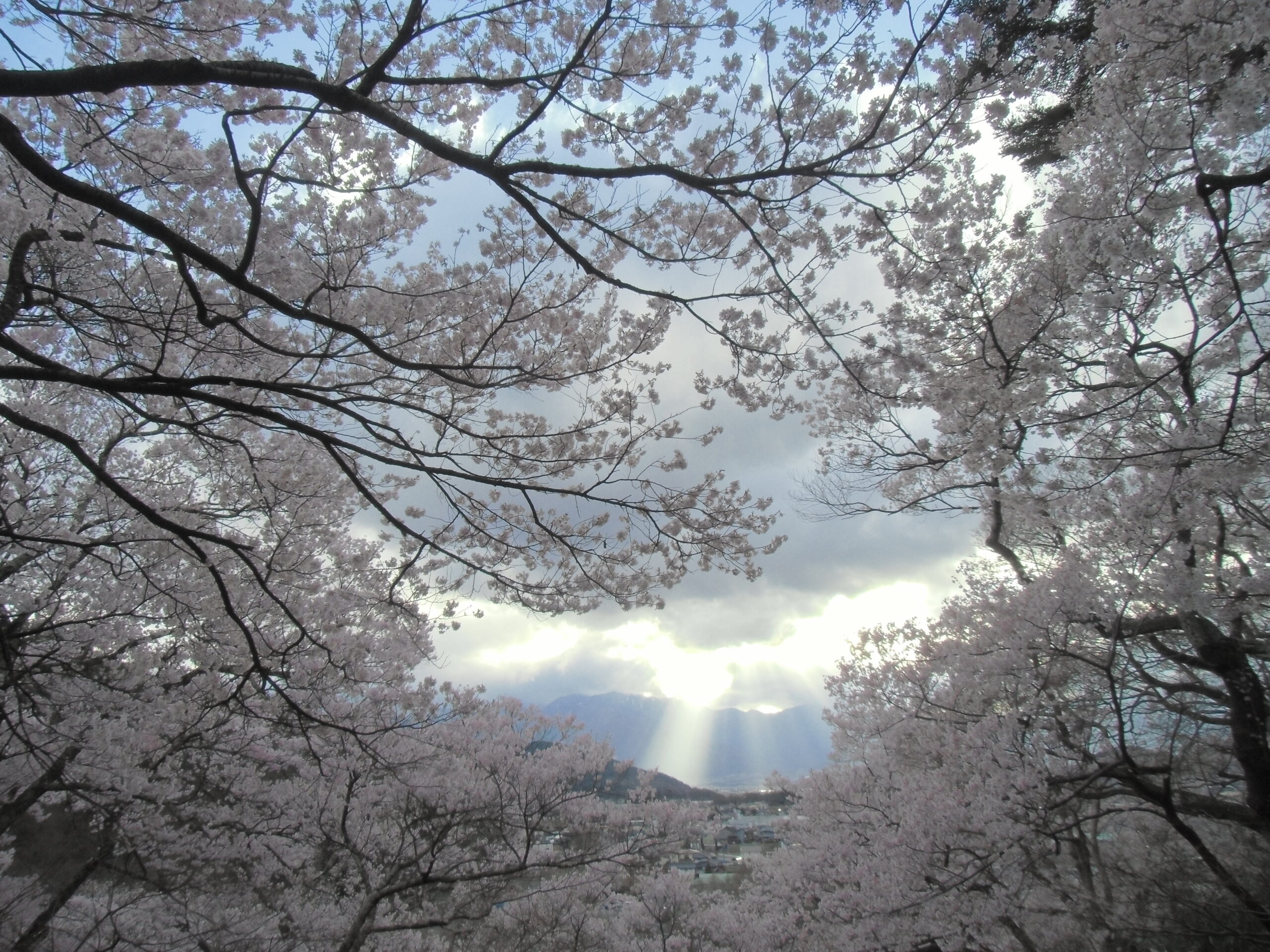 朝から夜まで桜を楽しむ事ができます。残雪の南アルプスの山々をバックに素敵な一枚を取ることも、中央アルプスに沈む夕陽を眺めながらのデートにも最高の場所ですよ!